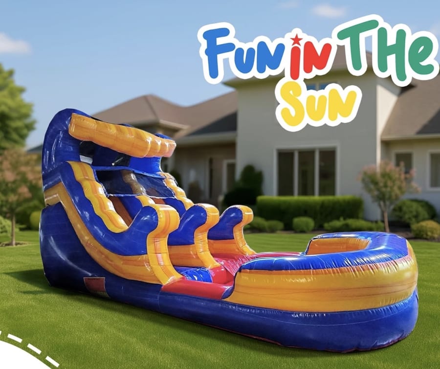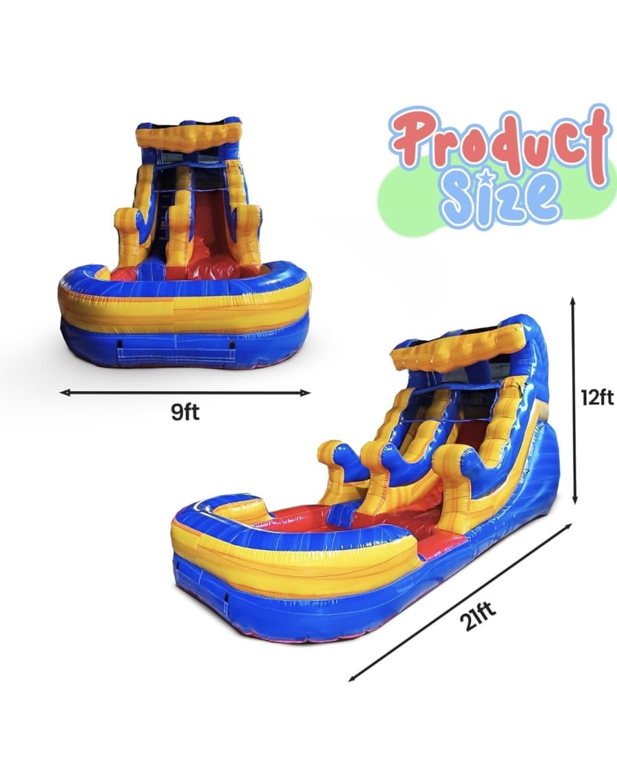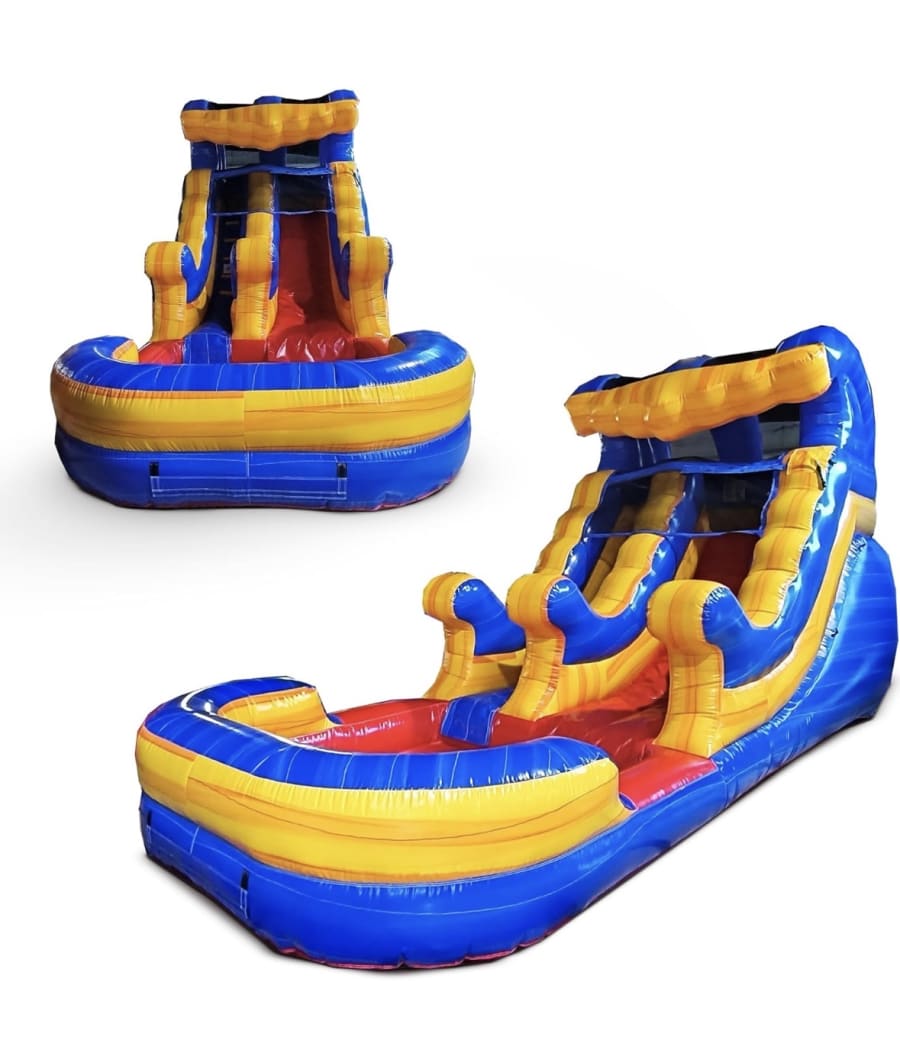 Vibrant Backyard Entertainment: Add a splash of color to your lawn with this bold blue, yellow, and red waterslide. It’s designed to turn any yard into a high-energy playground that guests of all ages will love.